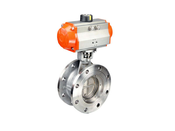 气动硬密封蝶阀是由气动执行器和三偏心金属硬密封法兰蝶阀组成。